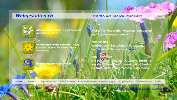 Für die Realisierung der drei Applikationen für Smartphones, der Alpenblumen – der Wildblumen – und der Rockies AlpineFlower Finder bin ich seit 2009 mit dem Fotoapparat unterwegs. Ergänzend zu den Naturbildern sind die botanischen Beschreibungen ein wichtiger Teil dieser Apps.